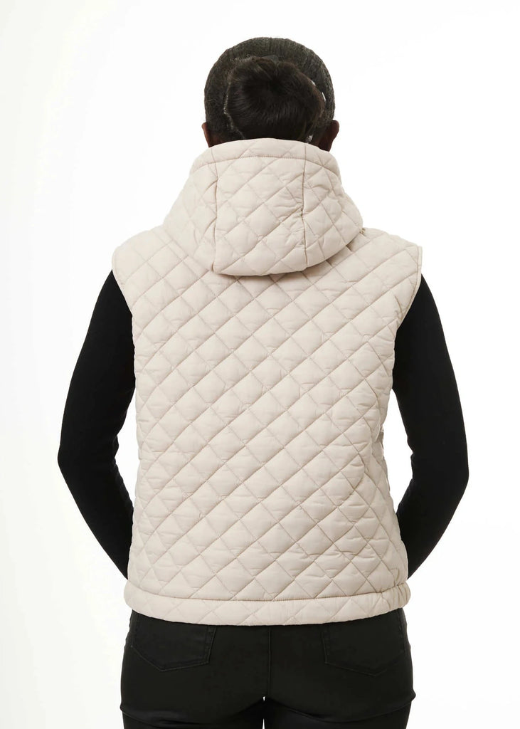 A mid-season essential, this vegan down vest layers perfectly over knits, sweatshirts and lighter jackets. Crafted from premium quality nylon, this hooded vest features a diamond stitch and an inside chest pocket with zipper.