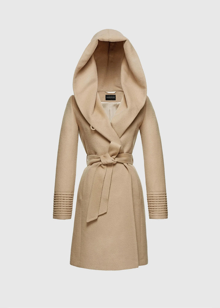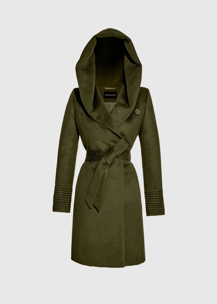 SENTALER Baby Alpaca Mid Length Hooded Wrap Coat (PRE-ORDER)