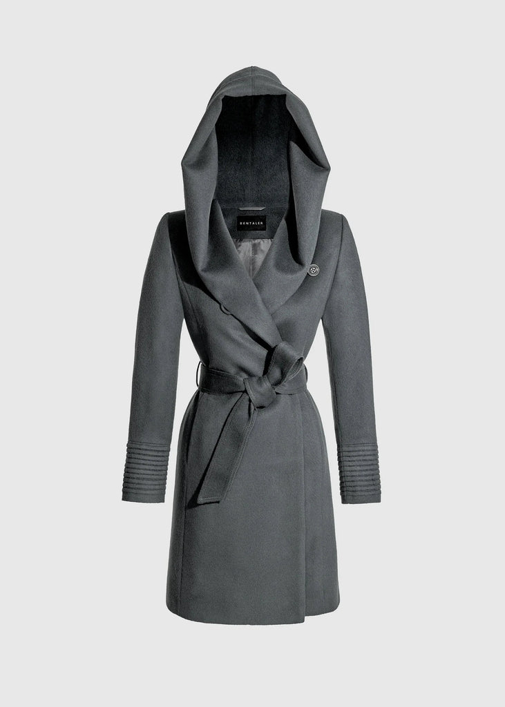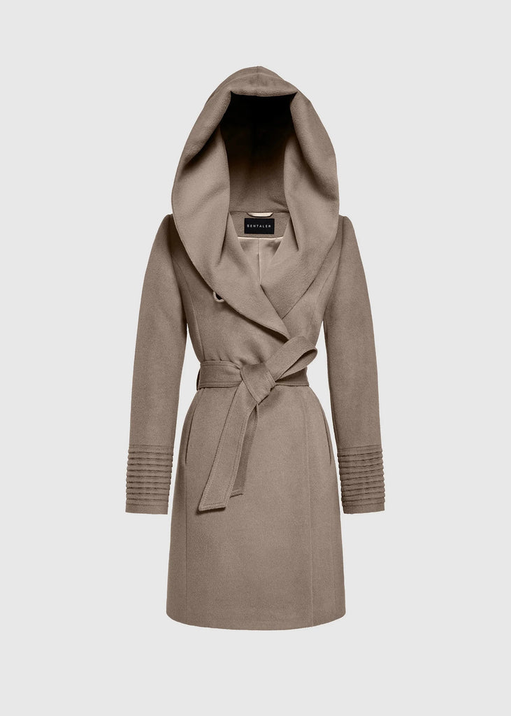 Mid length wrap coat crafted from exceptionally soft, warm and lightweight Baby Alpaca wool. The ultimate investment piece features SENTALER's signature ribbed detail at the sleeve cuffs and a functional oversized hood. It can also be worn as a popped cowl neck or draped wide across the shoulders. Lined.
