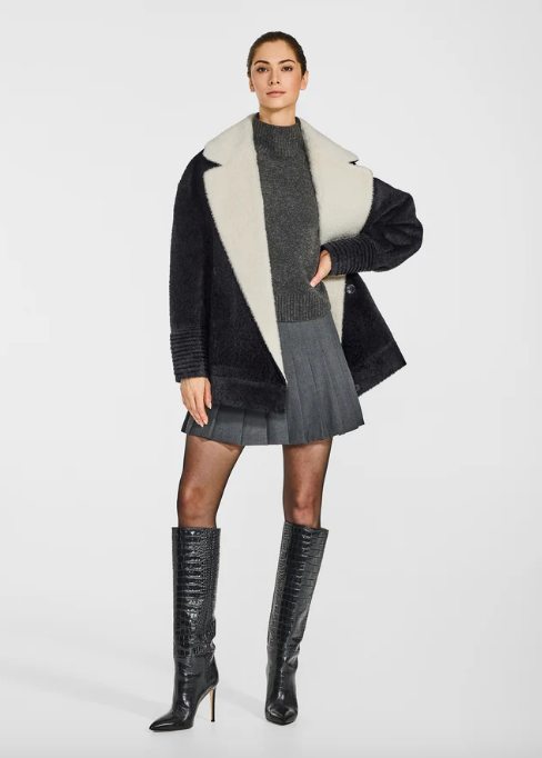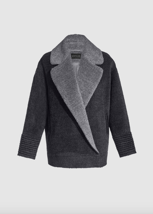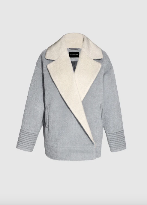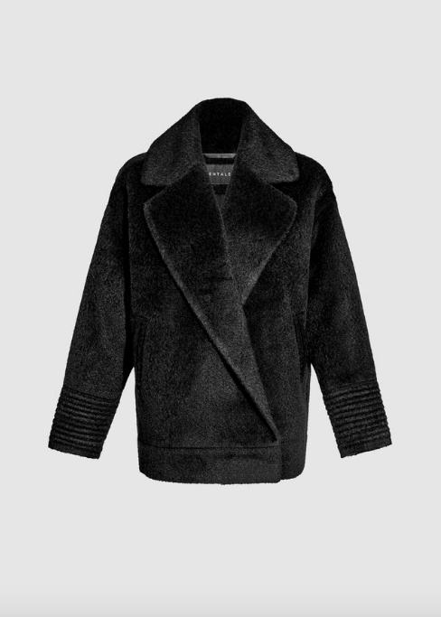 Short oversized coat crafted from textured Bouclé Suri Alpaca wool, known for supreme warmth and natural thermal insulation. This timeless topper is designed with a large notched collar, dropped shoulders, and SENTALER's signature ribbed detail at the sleeve cuffs. Lined.